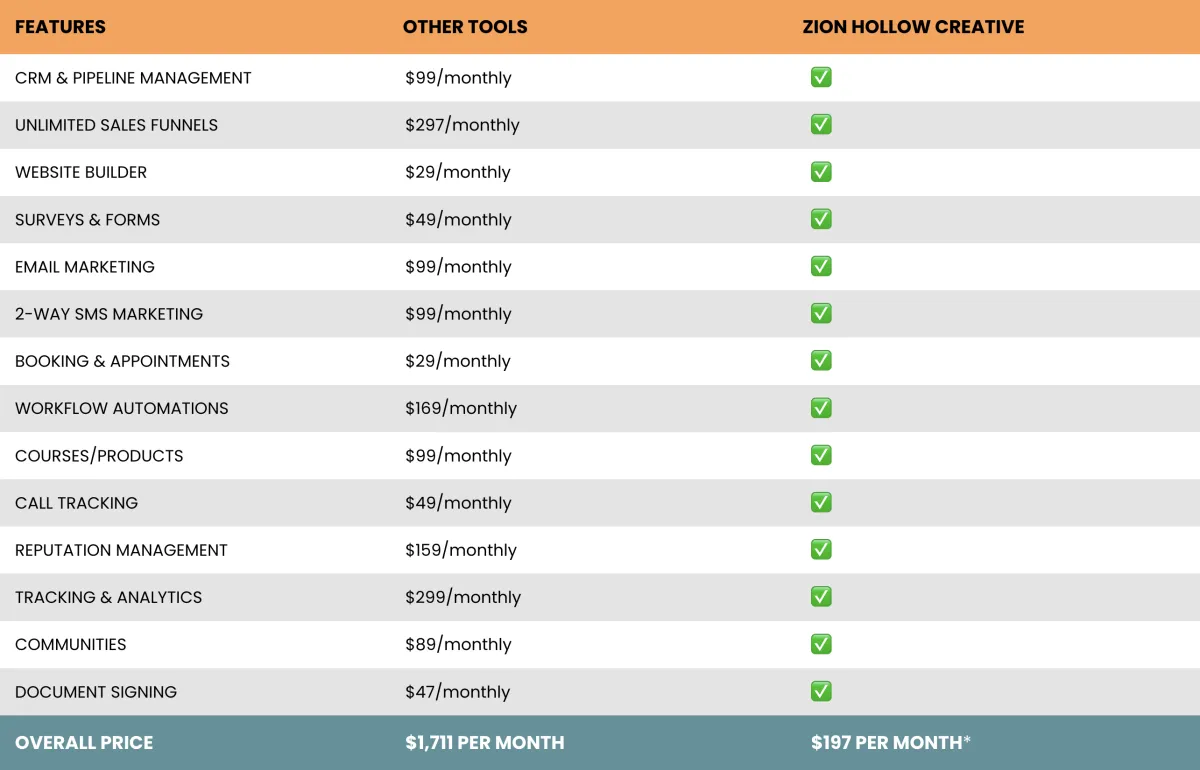 With our Premium Plan, you get everything you need to run and grow your business—without the hassle of juggling multiple tools. Get the power of CRM, automation, marketing, and analytics in one seamless platform for a fraction of the cost.
